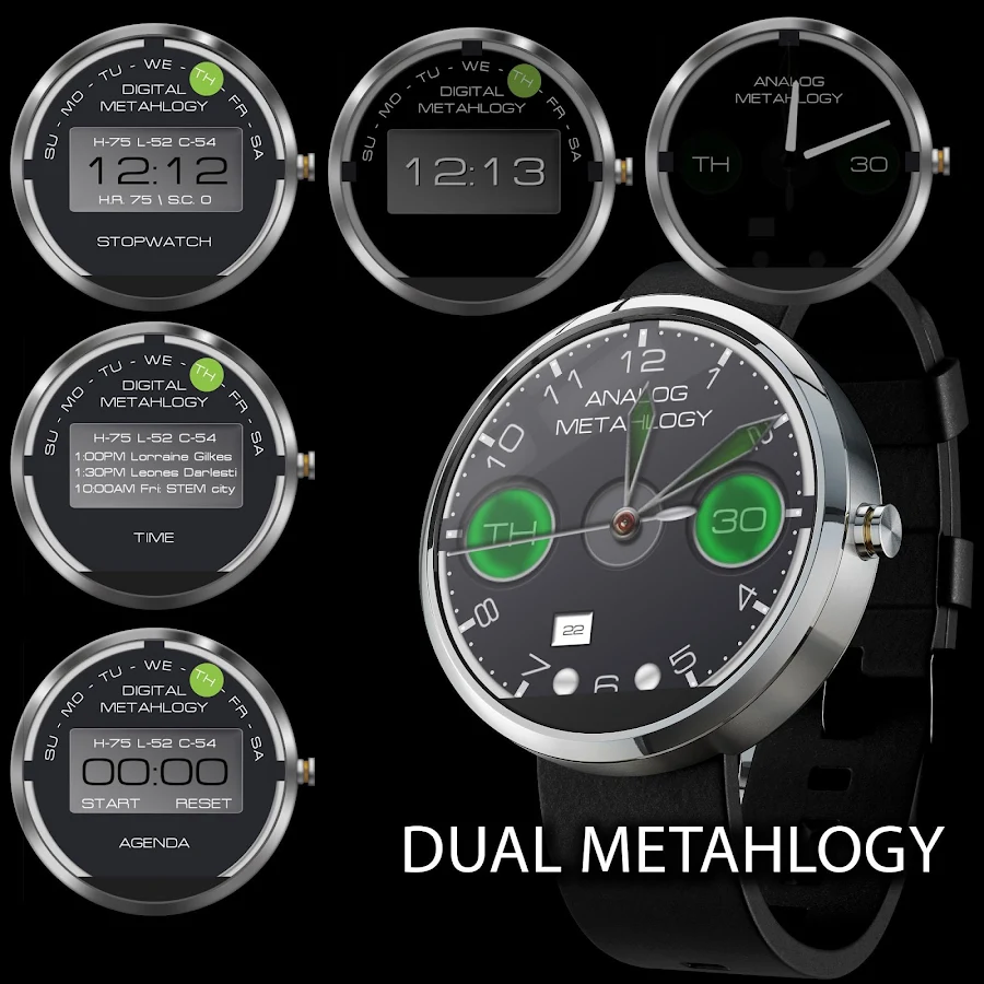 Tap the word Analog, and you have a digital watch with stopwatch, weather, step counter, heart rate and agenda!